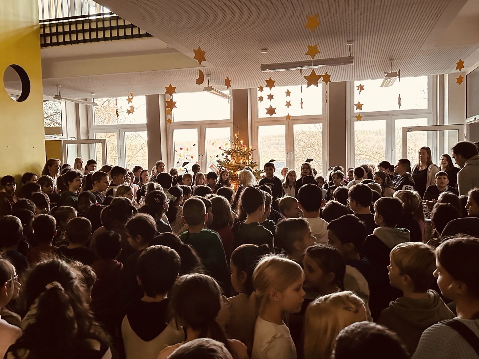 In der Adventszeit gehört es bei uns einfach dazu: An jedem Montag im Advent trifft sich morgens die ganze Schulgemeinschaft am Weihnachtsbaum. Gemeinsam singen wir Advents- und Weihnachtslieder und starten so gemütlich in die neue Woche.